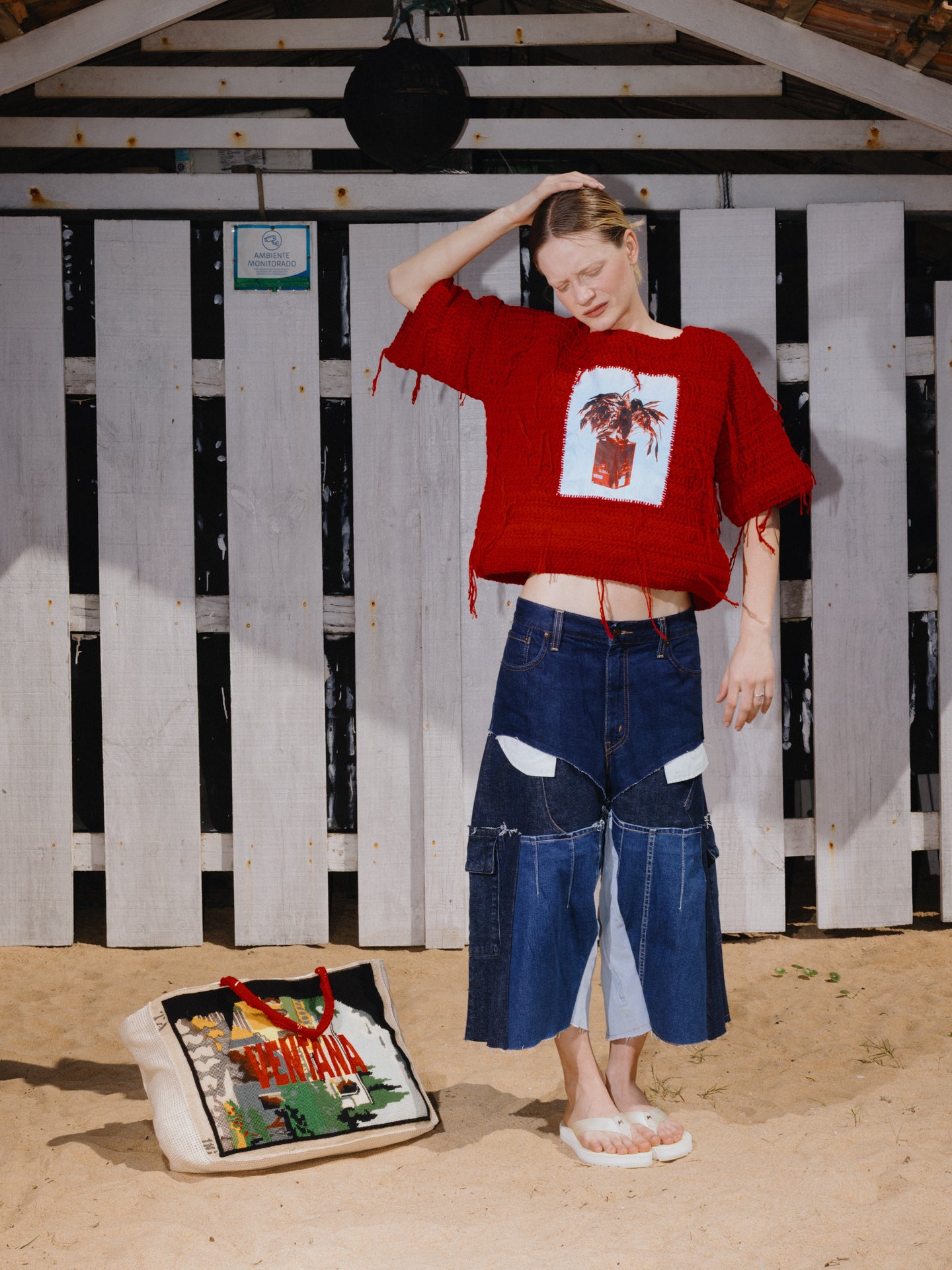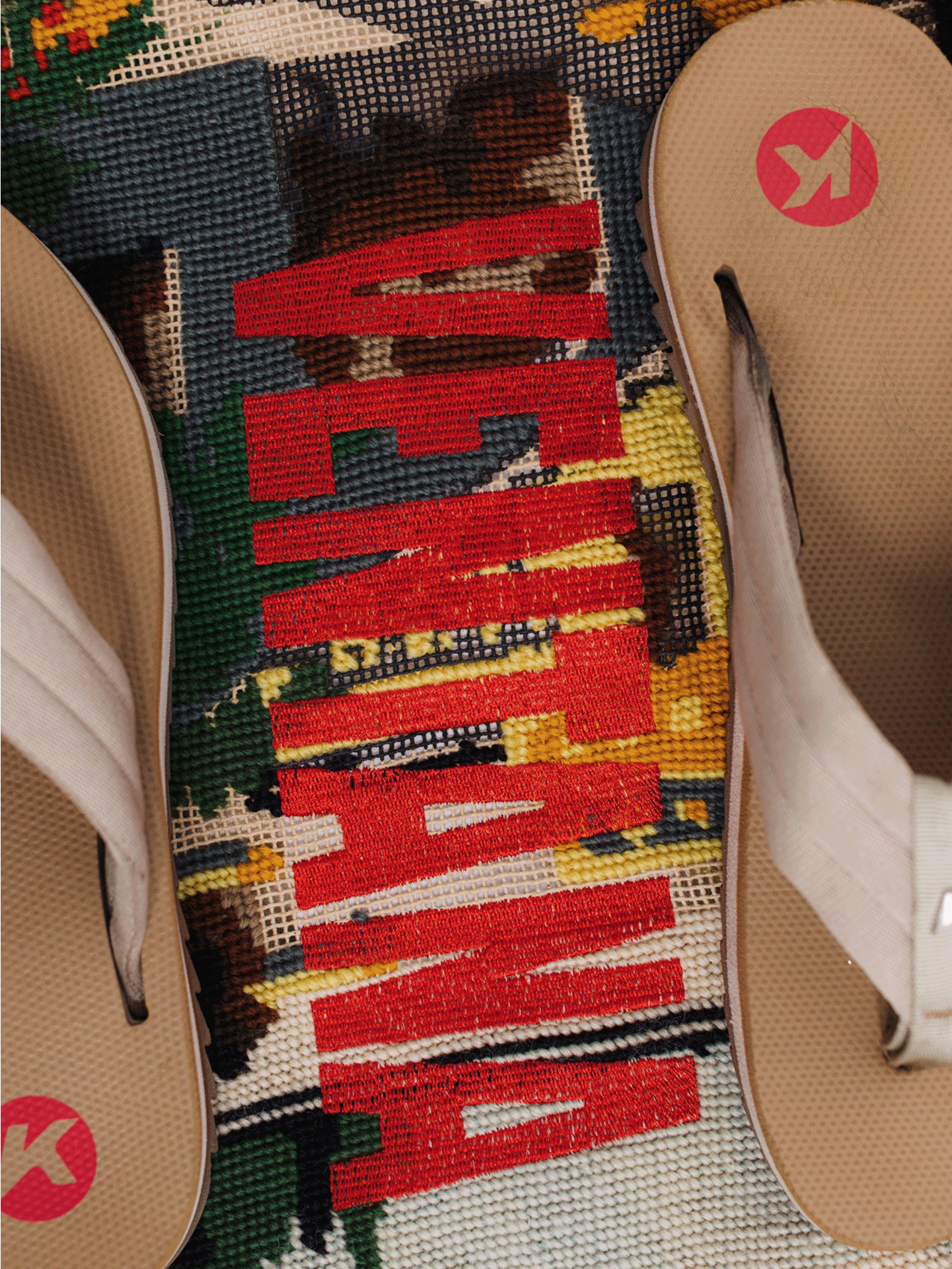 Bolsa feita a partir de tapete encontrado no brechó e restaurado + aplicação de bordado. Laterais com talagarça e forro jeans off que pode ser ultilizada do avesso também.