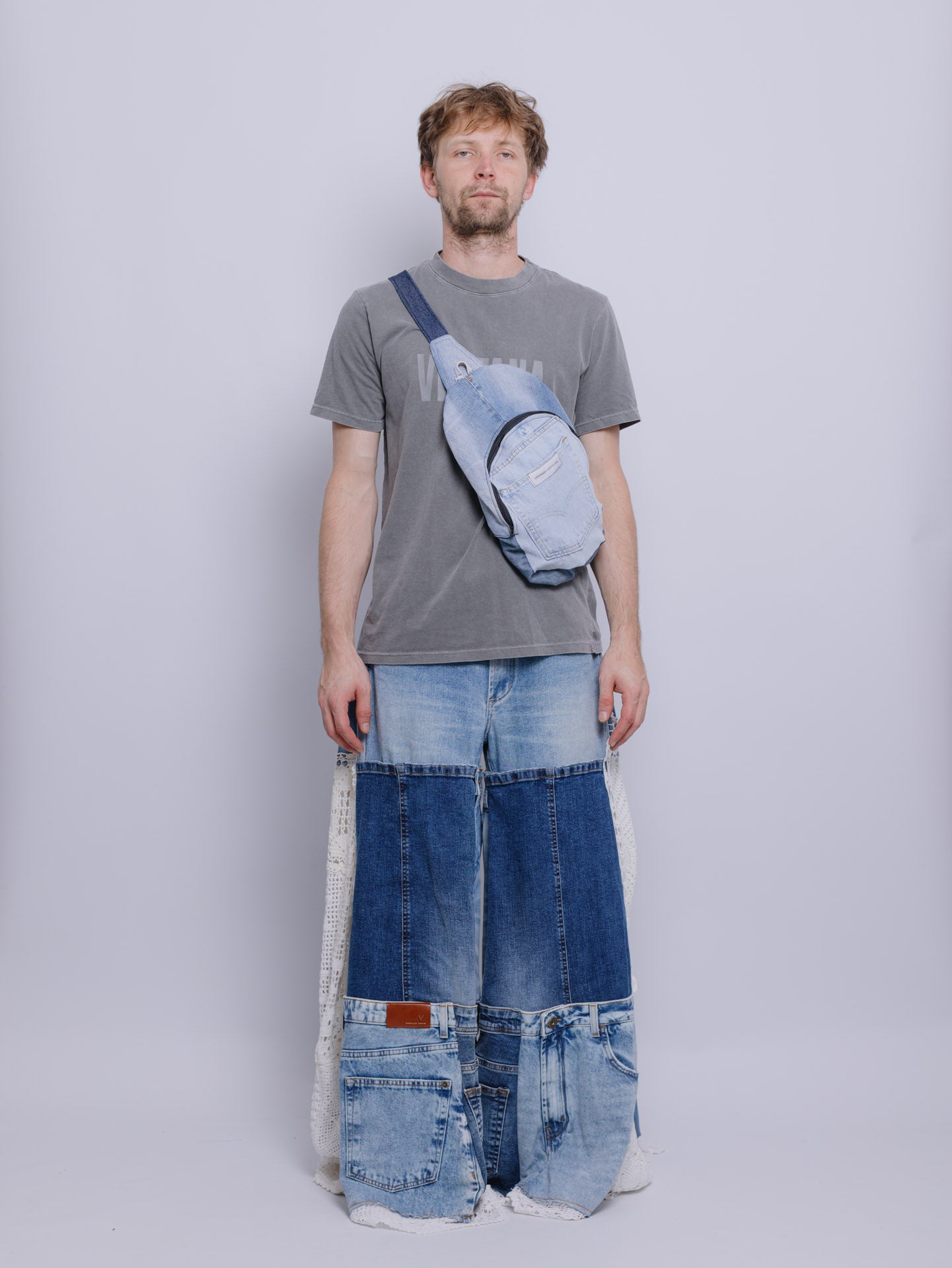 Bolsa jeans atravessada feita com reaproveitamento de jeans.
